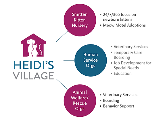 Heidi’s Village is Arizona’s collaborative animal welfare campus and central hub—a 5-acre state-of-the-art nonprofit resource center in Phoenix that unites rescues, partners, and the community to save vulnerable animals and expand lifesaving capacity across the state.