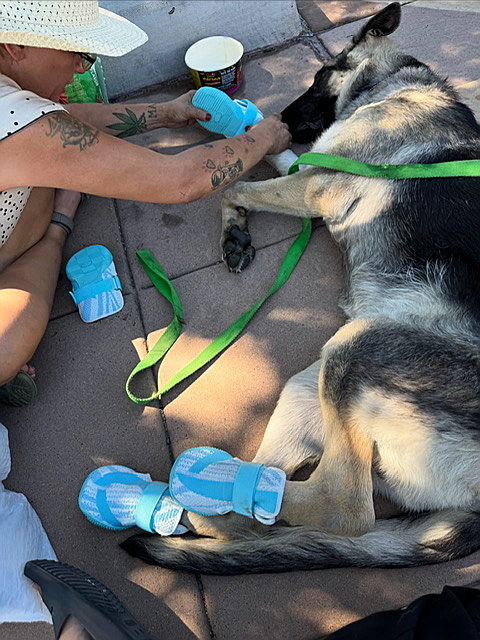 Through consistent, boots-on-the-ground outreach, we connect with unhoused individuals and veterans with pets providing critical pet food, supplies, and life-saving resources directly to people living on the streets and in shelters. From extreme heat relief items like dog booties, cooling gear, and protective supplies to everyday essentials, our work helps pets stay safe while their owners work to rebuild their lives.
