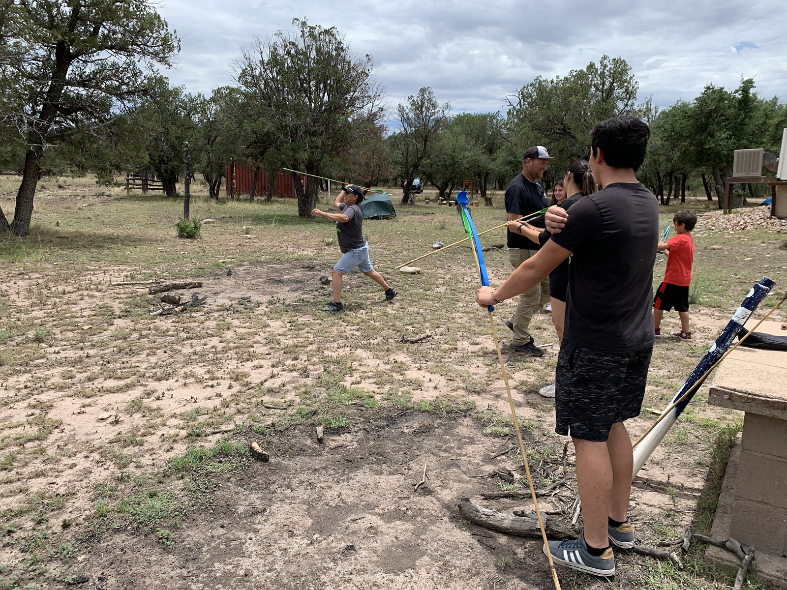 For many of the youth we work with, spending a day together on the land is a rare chance to make new friends—and to see old friends in a new light. At the Bryan Brown Youth Academy on Babad Do’ag (Mount Lemmon), competition and play quickly turn shy teens into laughing teammates as they throw atlatl darts, side-arm rabbit sticks at stuffed animals, and create pendant necklaces together.Learning to throw atlatls.