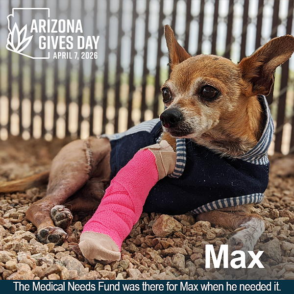 This year for Arizona Gives Day, Friends of Pima Animal Care Center is asking for you to support our Medical Needs Fund, which provides critical care for animals inside Pima Animal Care Center (PACC). Right now, this fund is all about the heroes. Who are these heroes? They are the pets who endure through medical crisis and PACC's clinic staff who provide extraordinary medical care to heal these heroic pets. The Medical Needs Fund exists for when a pet's medical needs go beyond what the shelter's resources can cover.